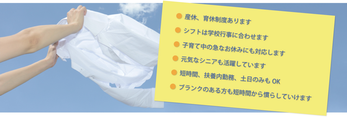 もちろん大丈夫です。みつむらクリーニングで働くスタッフには小さなお子さんがいるスタッフも大勢います。