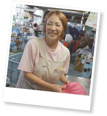「私は受付の仕事で洗ったりプレスしたりすることはないのですが、お客様から『あなたに任せるか ら』と言われると、本当にうれしく感じます。お客様のご要望を出来るだけ正確にきちんと工場に 伝えることが私の仕事だと思って頑張っています」